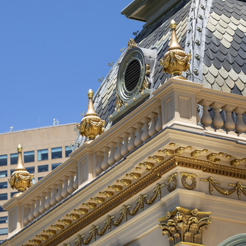 Ornamental elements of the façade have been reinstated to their gleaming glory using a combination of AquaGILD Exterior Gold and soon-to-be-released AquaGILD Exterior Silver. An ideal solution for both commercial and multi-residential projects, AquaGILD offers a brilliant aesthetic with durability and performance.